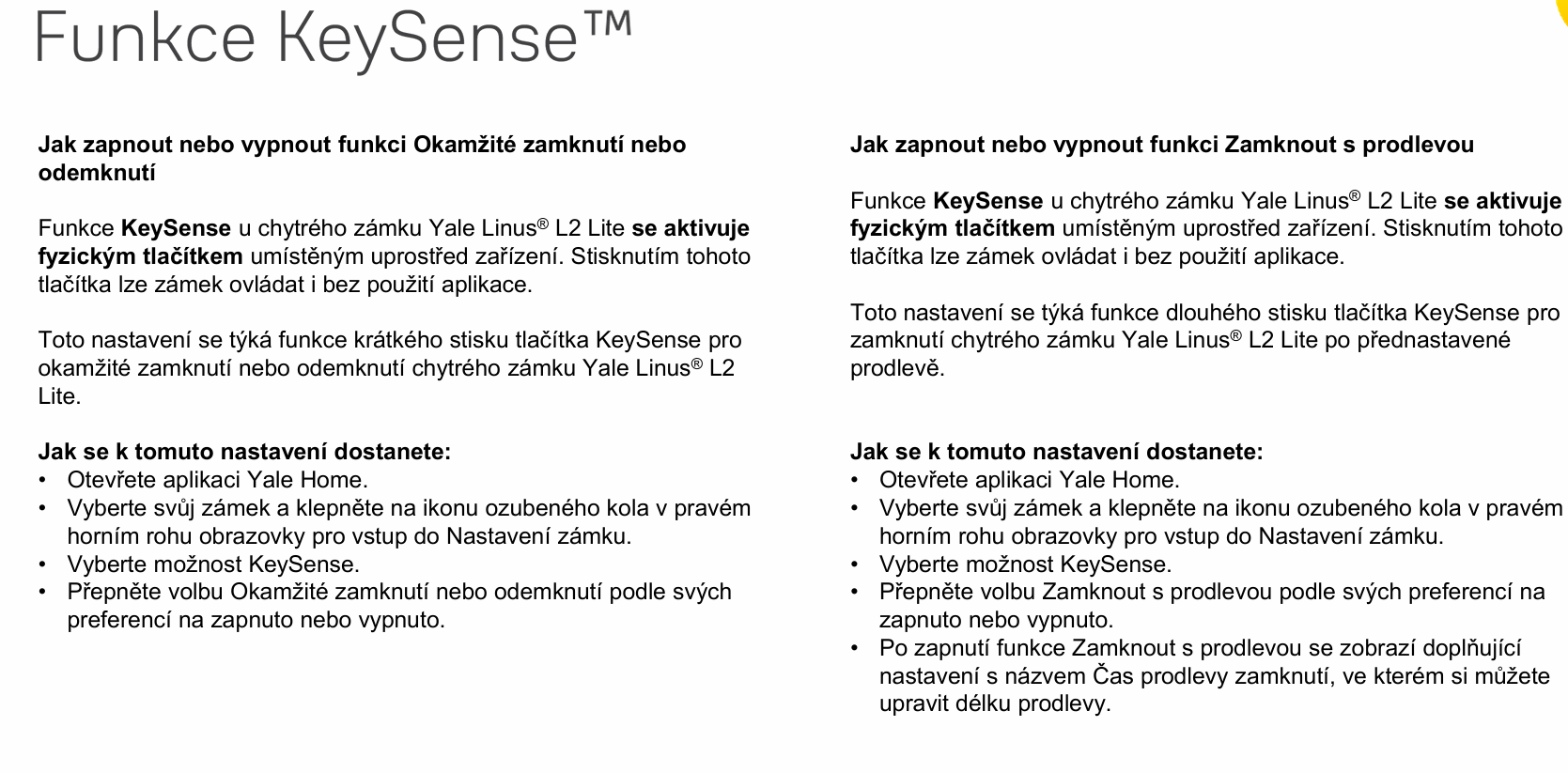 Toto nastavení se týká funkce krátkého stisku tlačítka KeySense pro